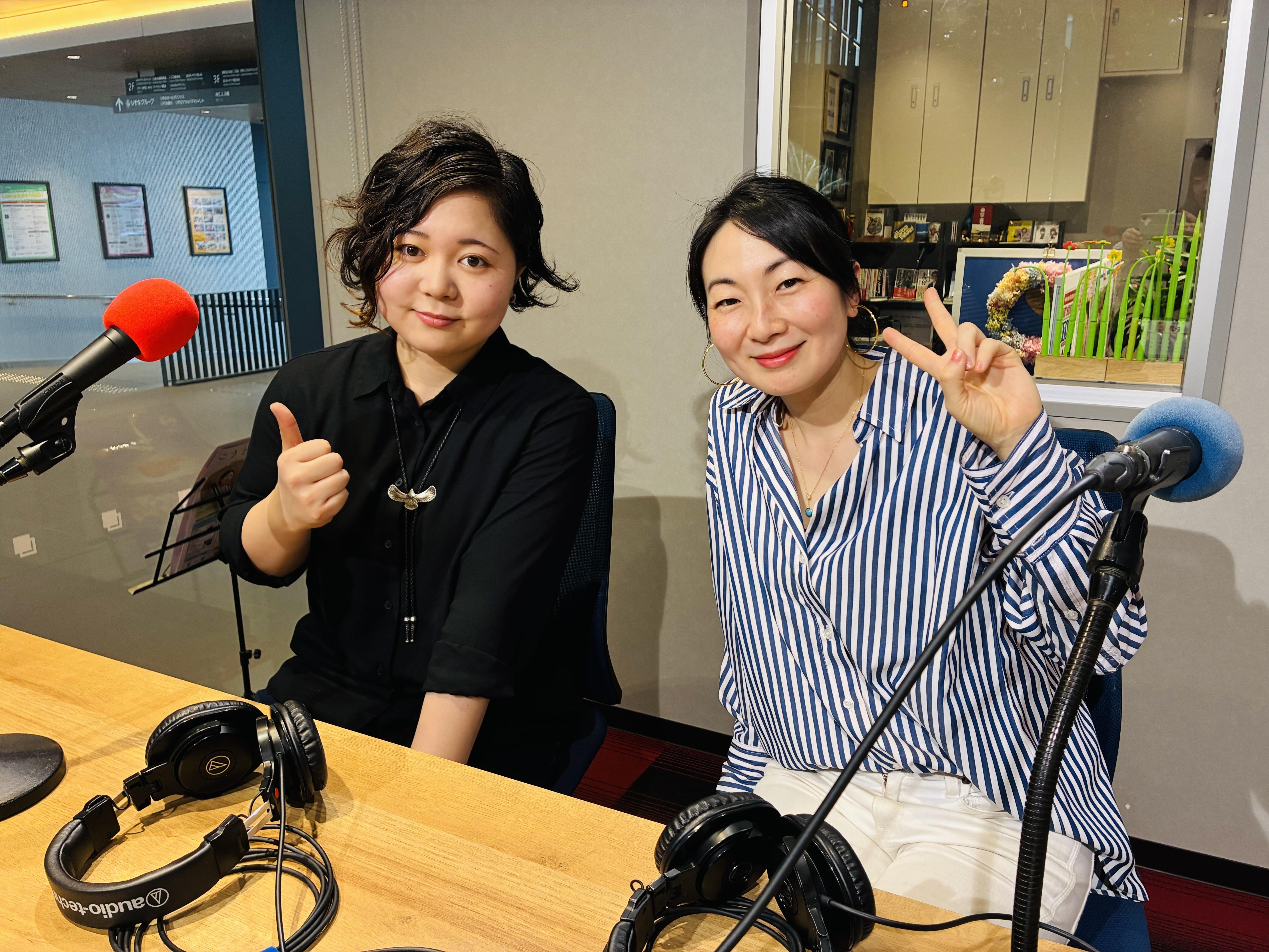 パーソナリティーのHONEY ON BELLY のYURI さんとKANAさん、リラックスして楽しそうにお話する姿にすっかり癒され、私ものびのびお話しできました